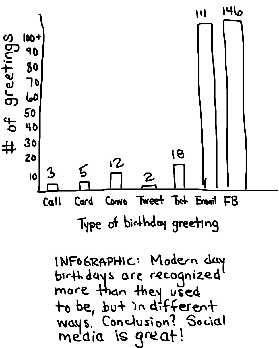 I often hear, “social media …puh …if I want to talk to someone or keep in touch, I’ll call them.” Truth is …no you won’t. Nobody will. And nobody ever did. It’s OK. It’s impossible to keep up with everyone and everything, including birthdays, births, marriages, graduations, and deaths. Social media, and specifically Facebook, makes it possible. Yes, I want to know when an old friend has a baby …and so do alotta people. Yes, I want to see my friends new home and be happy for them. Yes, I want to know how my friend’s wife’s chemo treatments are going. Yes, I want to know when my nieces and nephews make the honor roll, win a championship, or “chill with their BFFs” and no, I don’t understand their inside jokes, youthful humor, or their music (ok, yes I do love their music), but it’s fun to see it all.