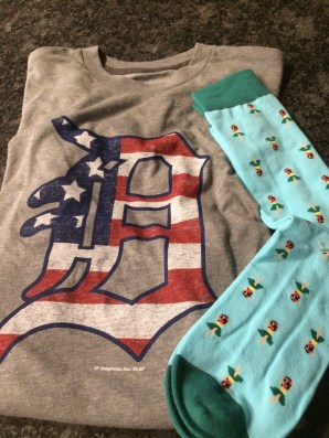 Then, my daughter picked out some loud socks, which is still trendy, and an Independence Day themed Old English “D” t-shirt that I can wear once a year (or maybe I can wear it on Memorial Day and Veteran’s Day). A t-shirt and socks, you ask? Isn’t that kinda cheap and insignificant? Hey! My 10-year-old picked it out, and I’m not going to yell at her for lack of effort and value.