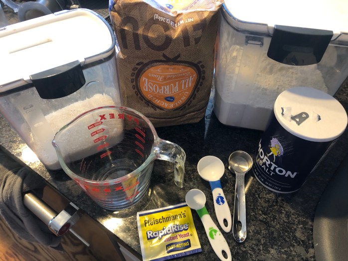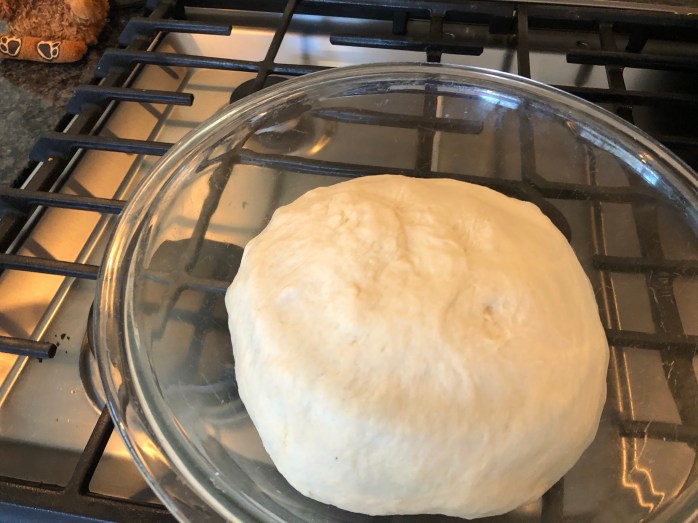 99% of the time, after 6-10 minutes in the mixer, it’s a perfect ball of dough. Form it into a ball about the size of a mini-basketball and cover it. If you can put it in the oven at 145 degrees or less, it will rise. Punch it down every 45 minutes for an hour and a half. Note: You don’t really need all that punching and kneeding, but it does make it rise better when baking.