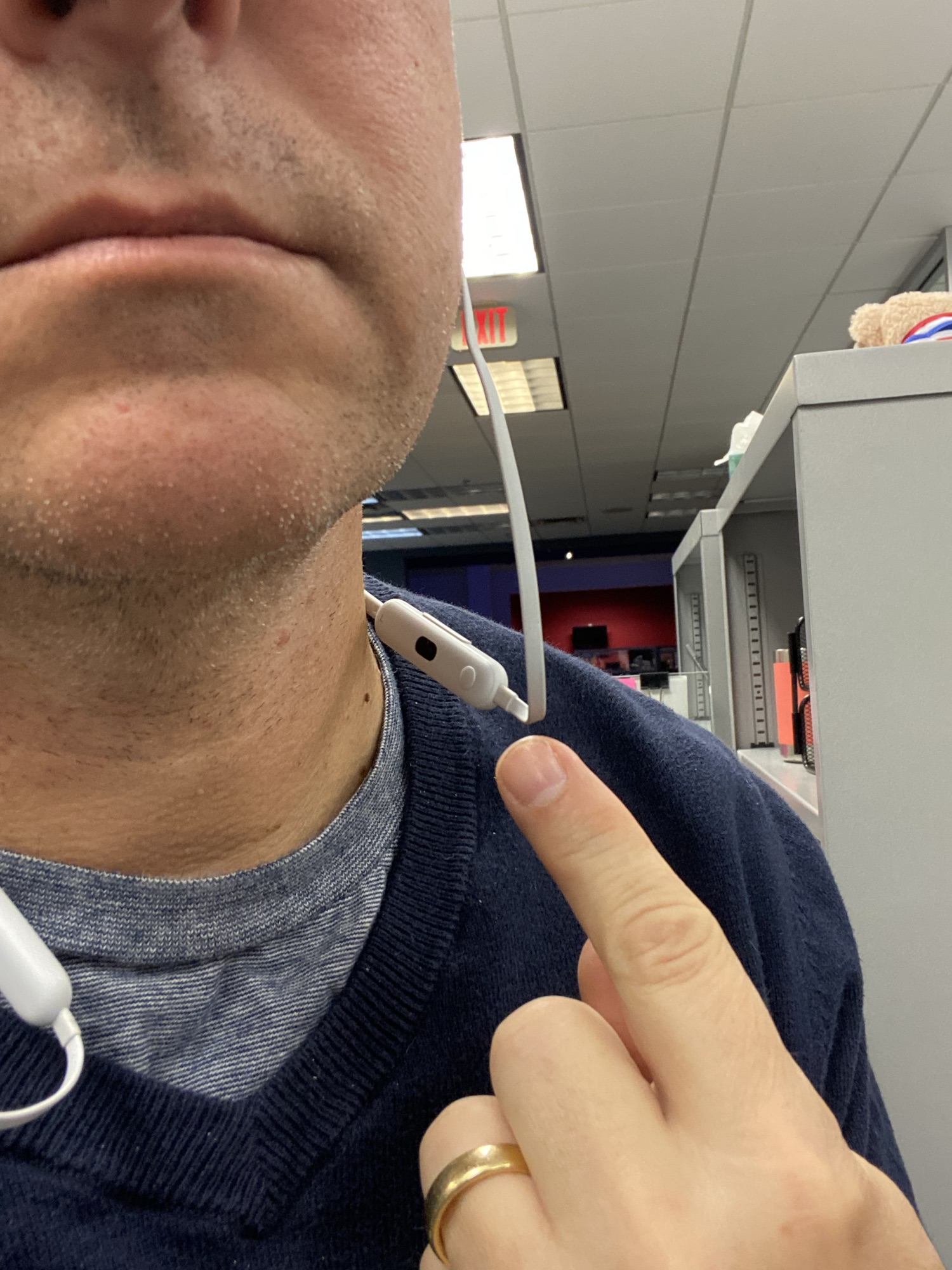 - They go around your neck so even if they fall out of your ear, they don’t fall onto the hard ground and break (I’m on my third pair of AirPods for this reason and currently only my right AirPod works because the left AirPod fell on the sidewalk, broke open, and is dead)