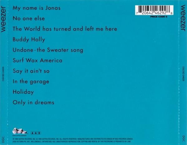 Track 1. Boom. Right out of the gate, “My Name is Jonas” blew me away. Two songs later, “The World Has Turned and Left Me Here” was the most rockin’ “emo” thing I’d ever heard. Track 4. “Buddy Holly”. Fun. Into “Undone – The Sweater Song” which sounded even better as a song than as a video. “Surf Wax America” made me ask, hey, is this band from California? Because every other band right now is from Seattle. Cool. And then … whoa! I don’t think I have many other songs where I remember the exact moment in time that I heard it for the first time. But “Say It Ain’t So” came across my speakers while delivering a pizza to a warehouse right by the Kentwood Airport. It was a song about a kid with an alcoholic father and how a beer in a fridge made him sad about how alcoholism took his father from him. He wanted to fix things. He writes a letter. It’s deep. Heavy. Add to that one of my favorite musical tricks … slow then fast and quiet then loud with a bass line featured in the quiet, slow parts. And lead singer Rivers Cuomo’s voice that sounds a little off-key and sounds like something I can sing along to … put that all together and the song was perfection.