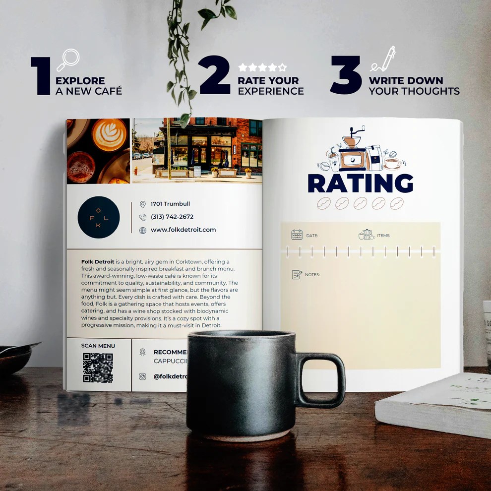 The Detroit Coffee Passport has 30 “handpicked” (I question this because there’s a Coffee Passport for every city and some of their choices, knowing what I know, don’t seem “handpicked” …but I’m OK that 28 out of the 30 could be) cafes and coffee shops to try. Then, make some notes.