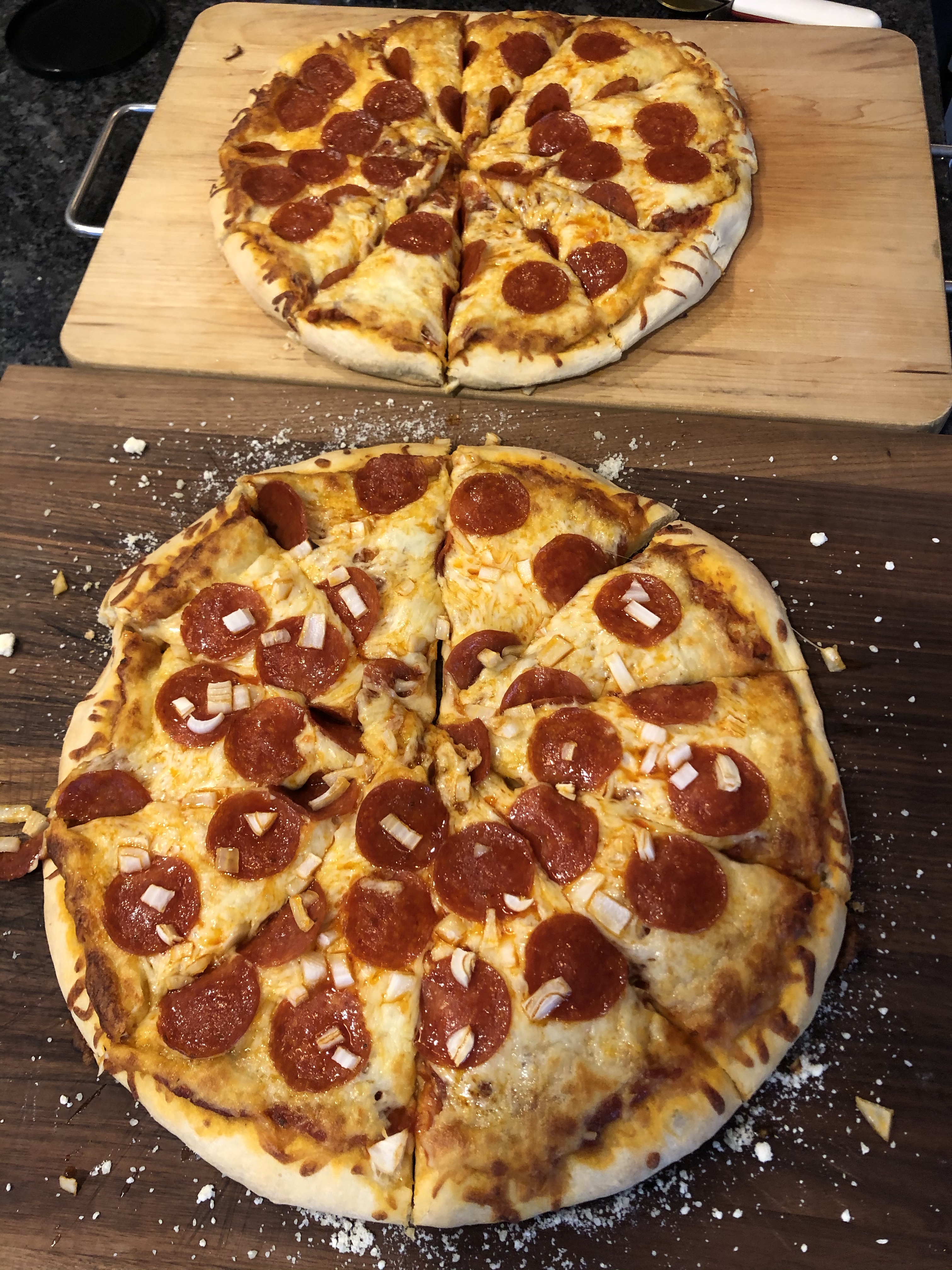 At the time I posted this, we’re in the midst of a nationwide shelter-in-place because of the Coronovirus so try it. Call me if you have questions. If you fail, try again. You’ve got time. If you’ve got wee little kids …first, I’m sorry. Second, let ’em put the toppings on. Experiment. But trust me, when you get it right, you’re gonna thank me. Pizza hasn’t tasted this good since you ordered it at 3:00 a.m. to your dorm in Akers back in 1995.