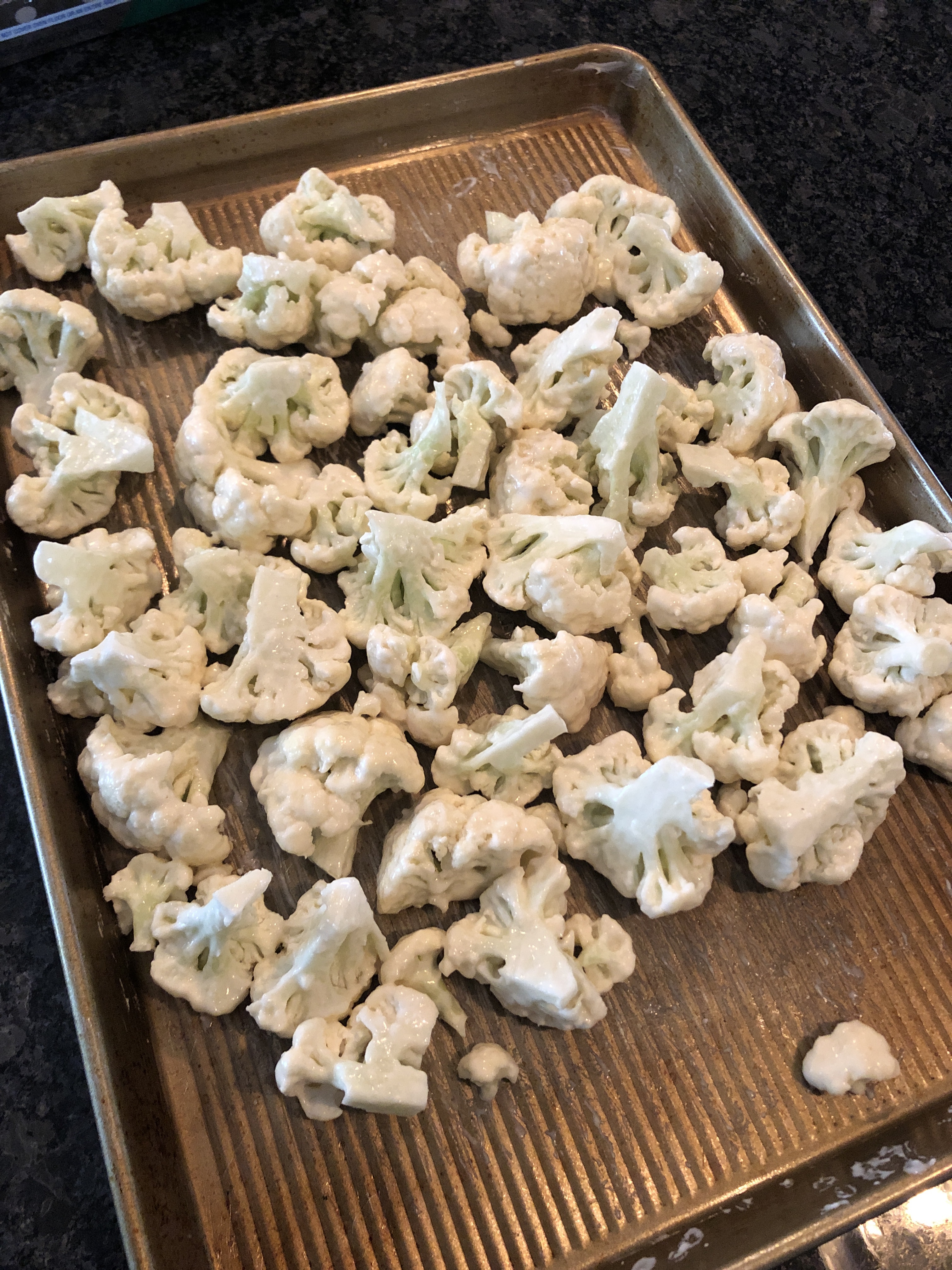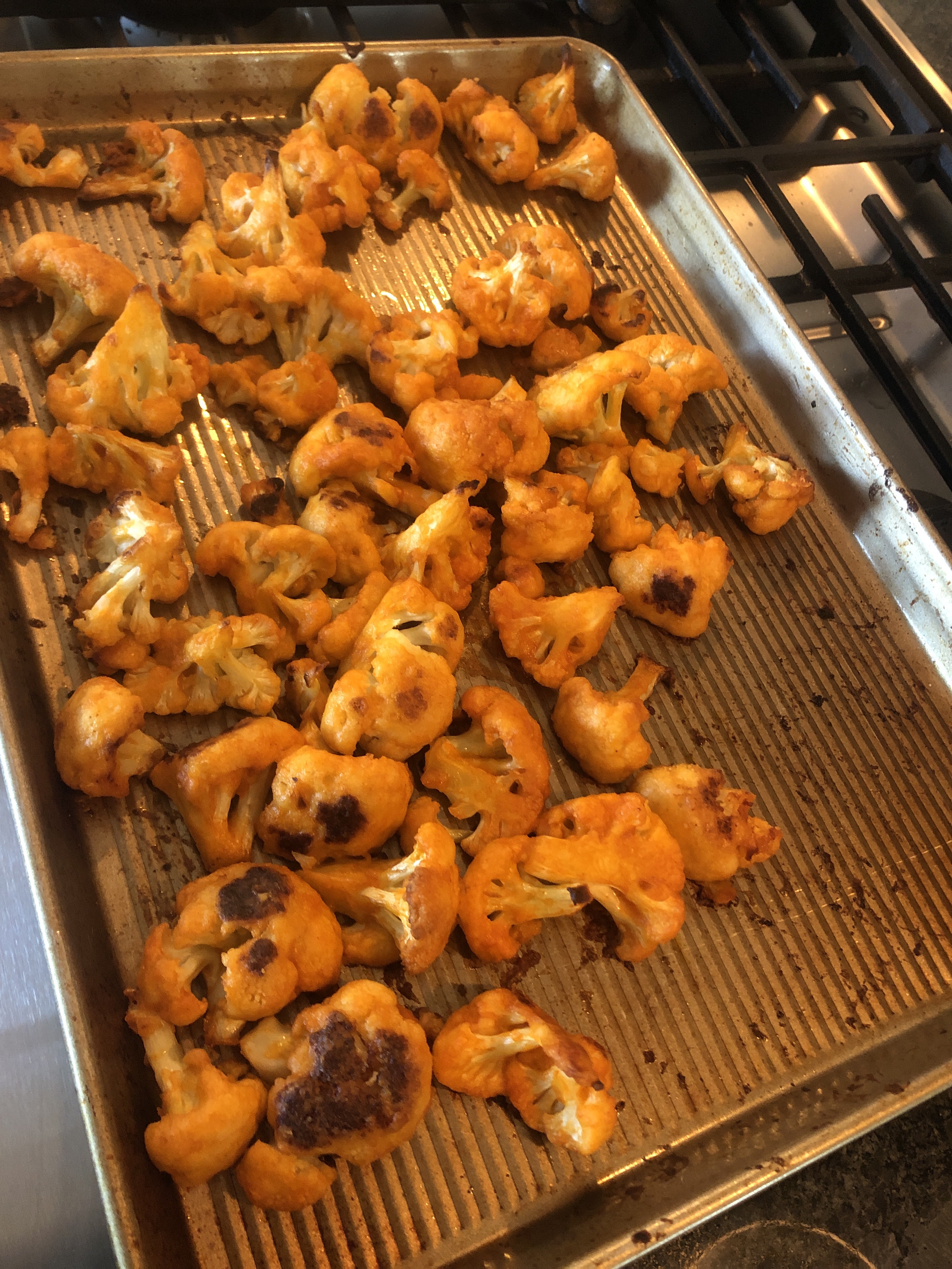 Found a recipe for cauliflower hot wings. I modified some things so they’d be easier to make (and taste better). Here’s how to make ’em. You’ll love them. My non-plant-based family (including my teenage son) like these.