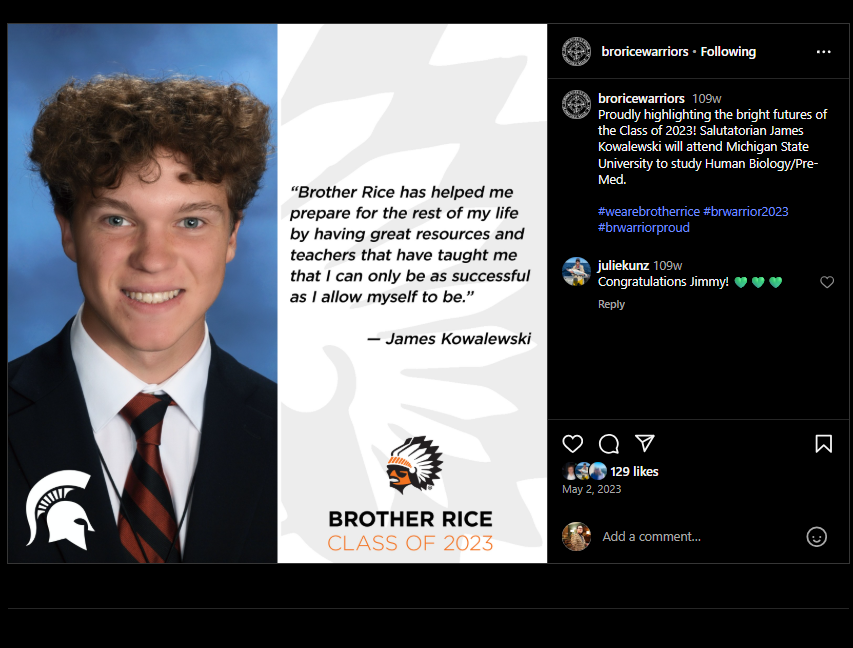Jimmy highlighted on Brother Rice’s Instagram here.